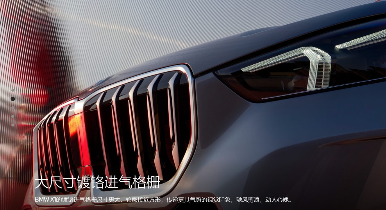 The powerful, sporty appearance gives the BMW X1 personality at every Angle. The colorful detail design adds a bright focus to the vehicle, and the atmospheric traveling attitude is exciting.